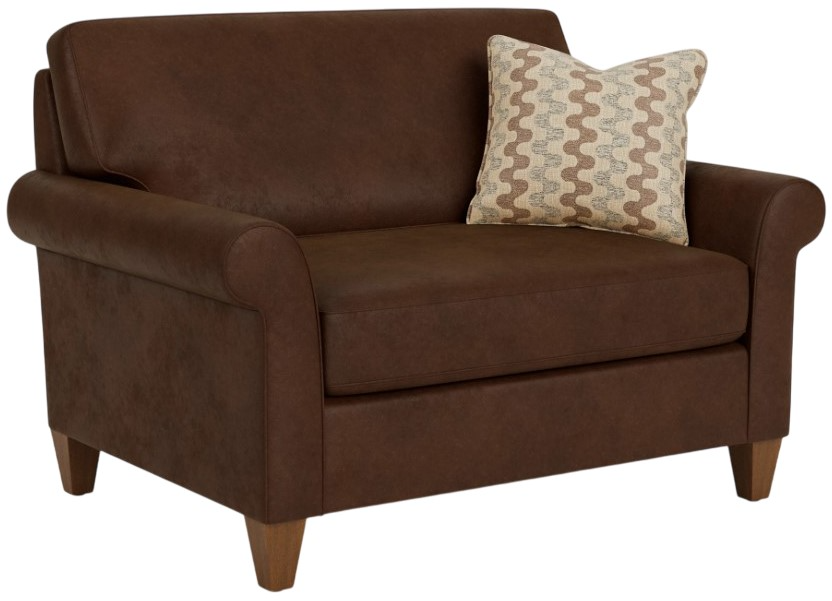 Too much is a good thing when you’re relaxing on a chair and a half with comfortable box and back cushioning between the elegantly rolled arms. More than enough for a party of one, the luxurious feel of this contemporary chair may be too much to keep for yourself.